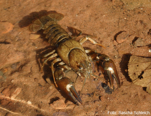 Gefahren für heimische Arten: Der Signalkrebs kann die Krebspest übertragen und ist auch durch genetische Vorteile dem heimischen Edelkrebs überlegen.