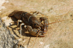 Nach Ihren angegebenen Merkmalen handelt es sich um den heimischen Steinkrebs. Da haben Sie einen tollen und schützenswerten Fund gemacht!Wir bitten Sie diesen Fund uns oder den entsprechenden Behörden zu melden, um geeignete Schutzmaßnahmen durchführen zu können.